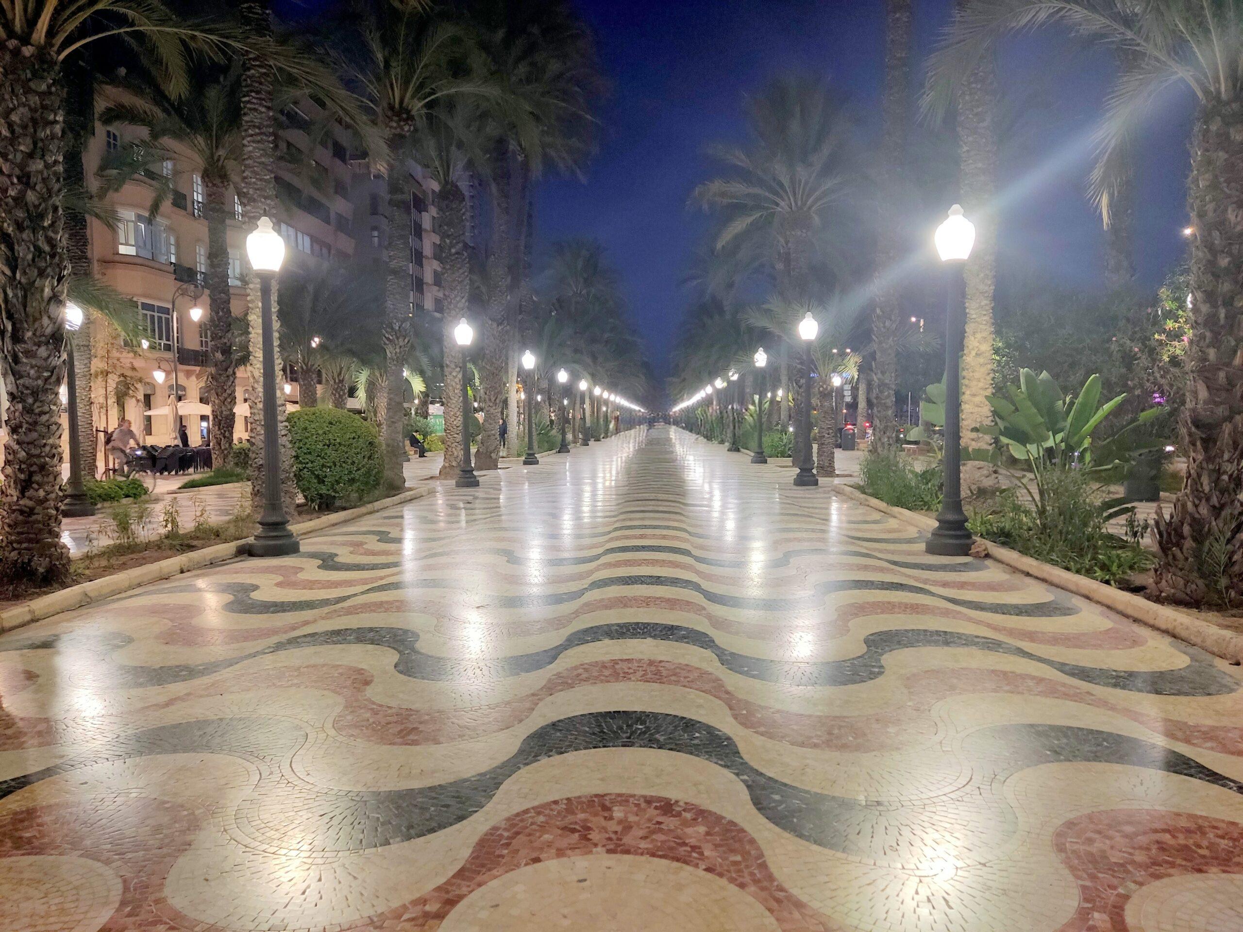 Zurück in Alicante, erlebe ich nun die Explanada de Espana bei Nacht