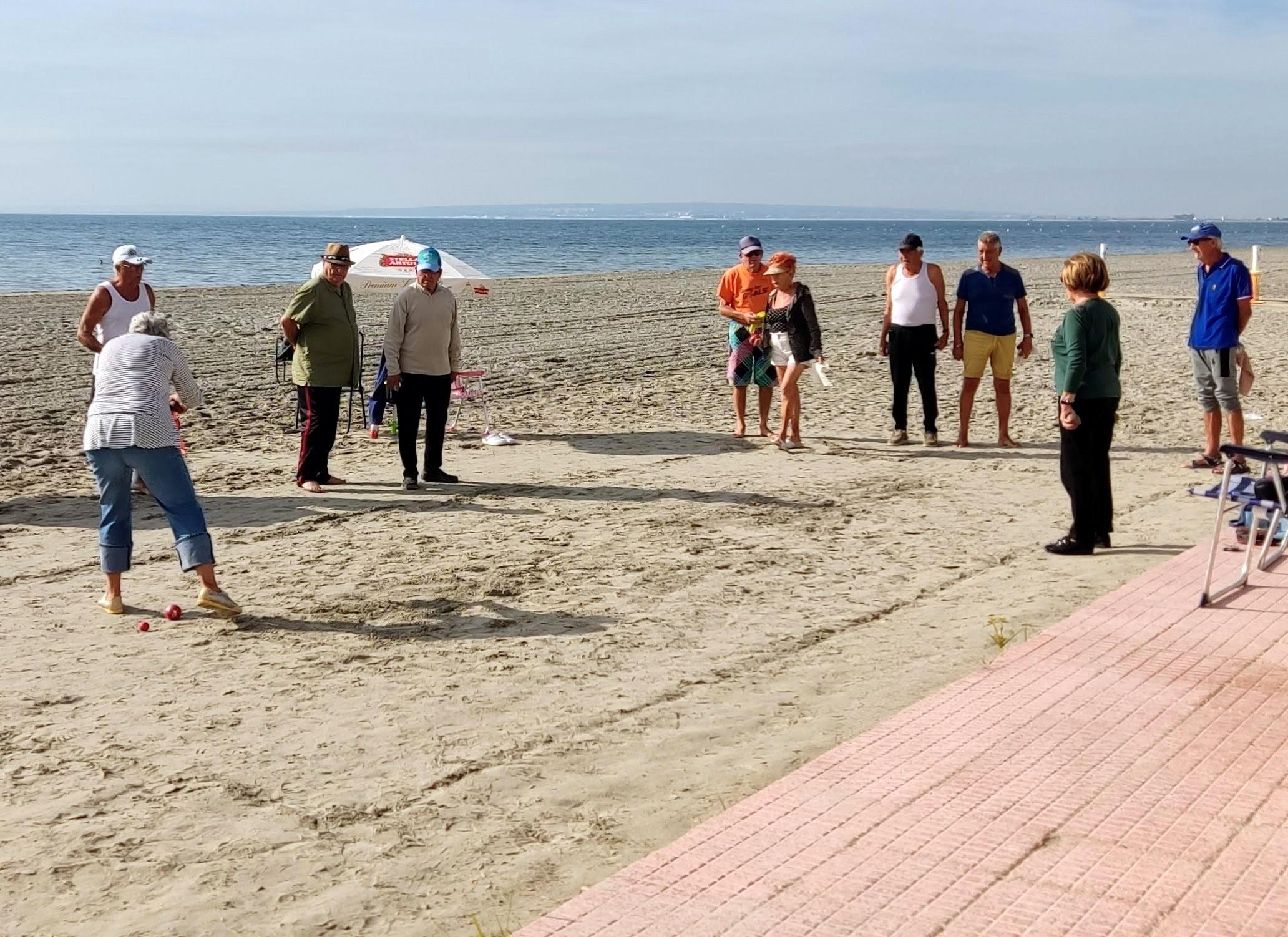 Ich spaziere hinunter ans Meer, wo Einheimische Boule spielen