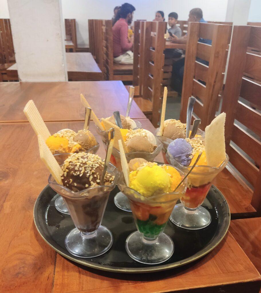 Niemals würde ich das essen, wenn ich individuell unterwegs bin. Doch ich schließe mich der Gruppe an – und das Eis schmeckt ganz gut