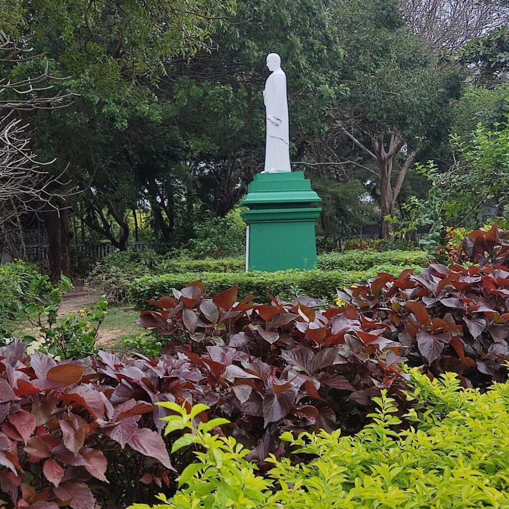 2004 wurde die Bibliothek wieder aufgebaut. Das Denkmal erinnert an einen kath. Priester, dessen Herz aus Verzweiflung versagte während des Brandes