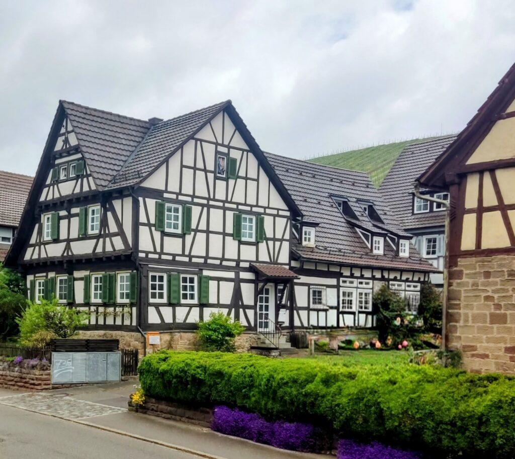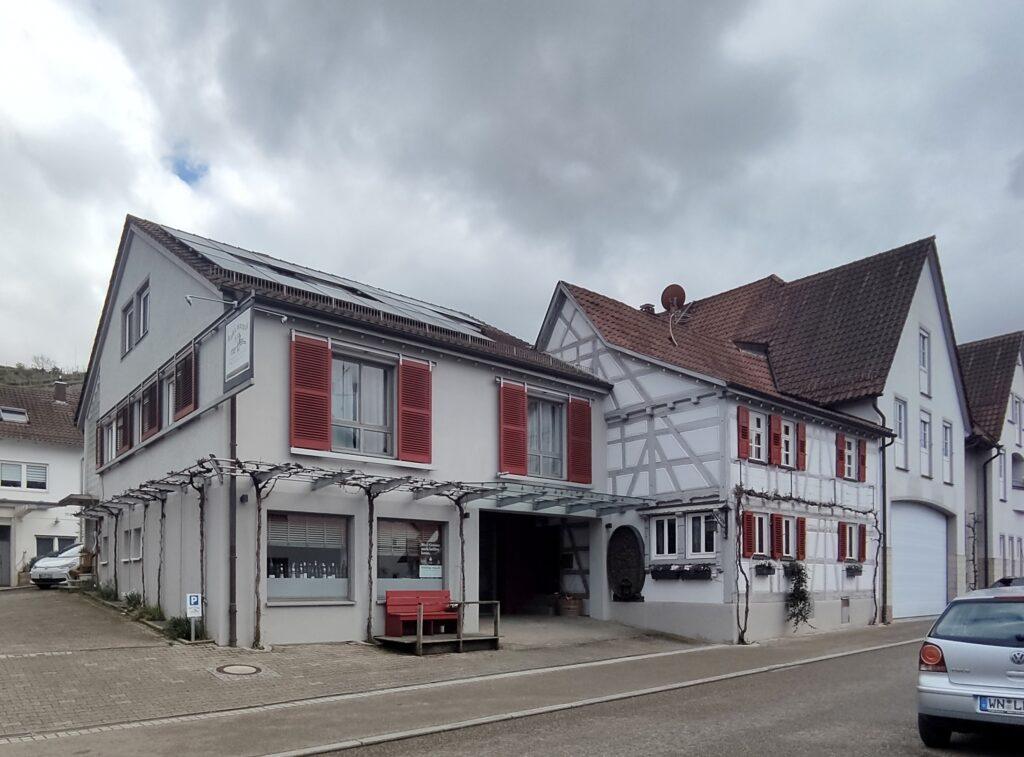 Die Stettener Kelter steht am Fuße der Weinberge