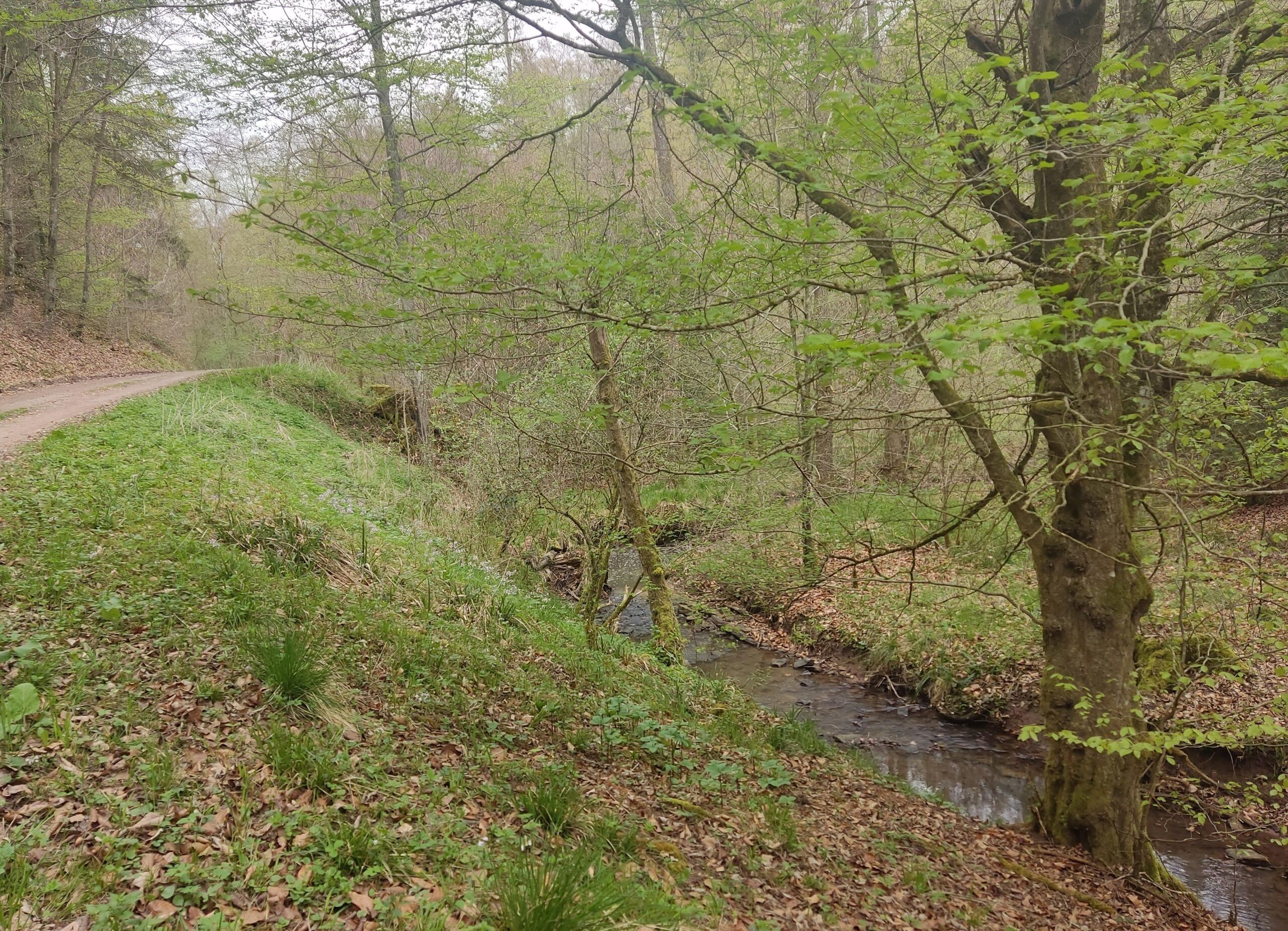 Unser Wanderweg mit der Blauen-Punkt-Markierung verläuft am Strümpfelbach