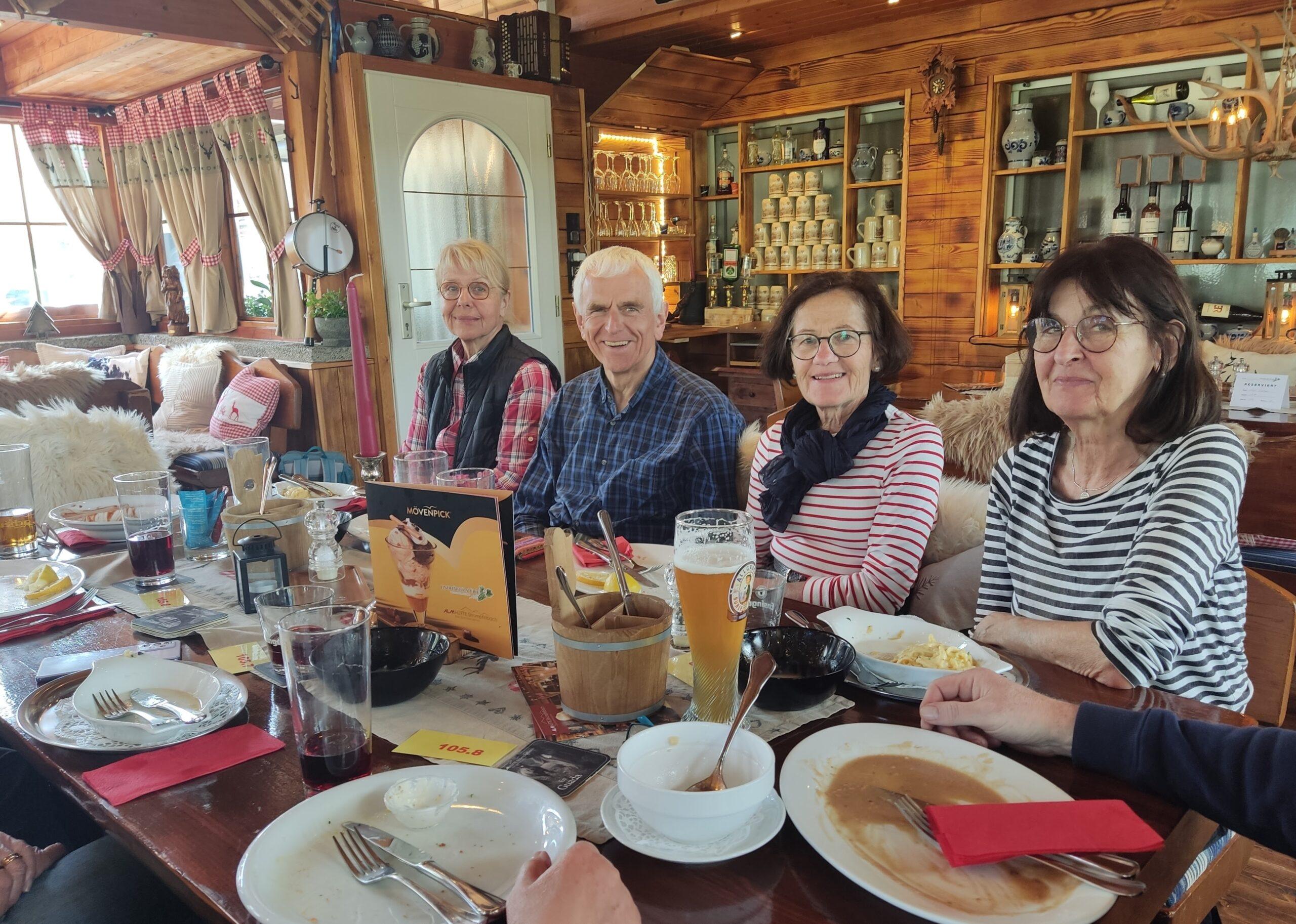 Fröhliche Gesichter, wir genießen die gelungene Wanderung und die nette Gesellschaft