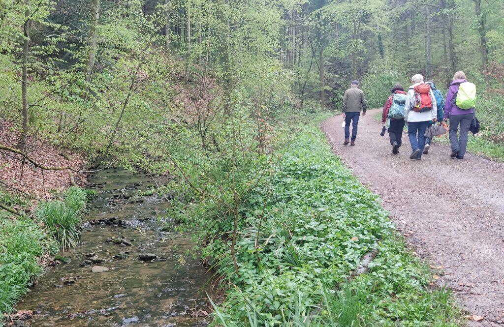 Doch das Wetter bleibt stabil. Weiter am plätschernden Stettener Haldenbach entlang,