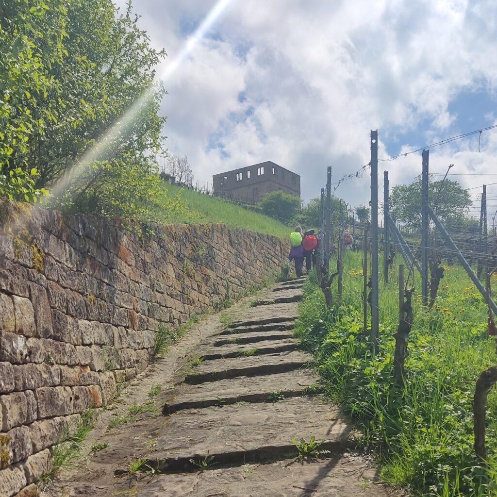 hinauf zur Y-Burg. Ein schöner Weg mit kunstvollen Naturstein-Stufen