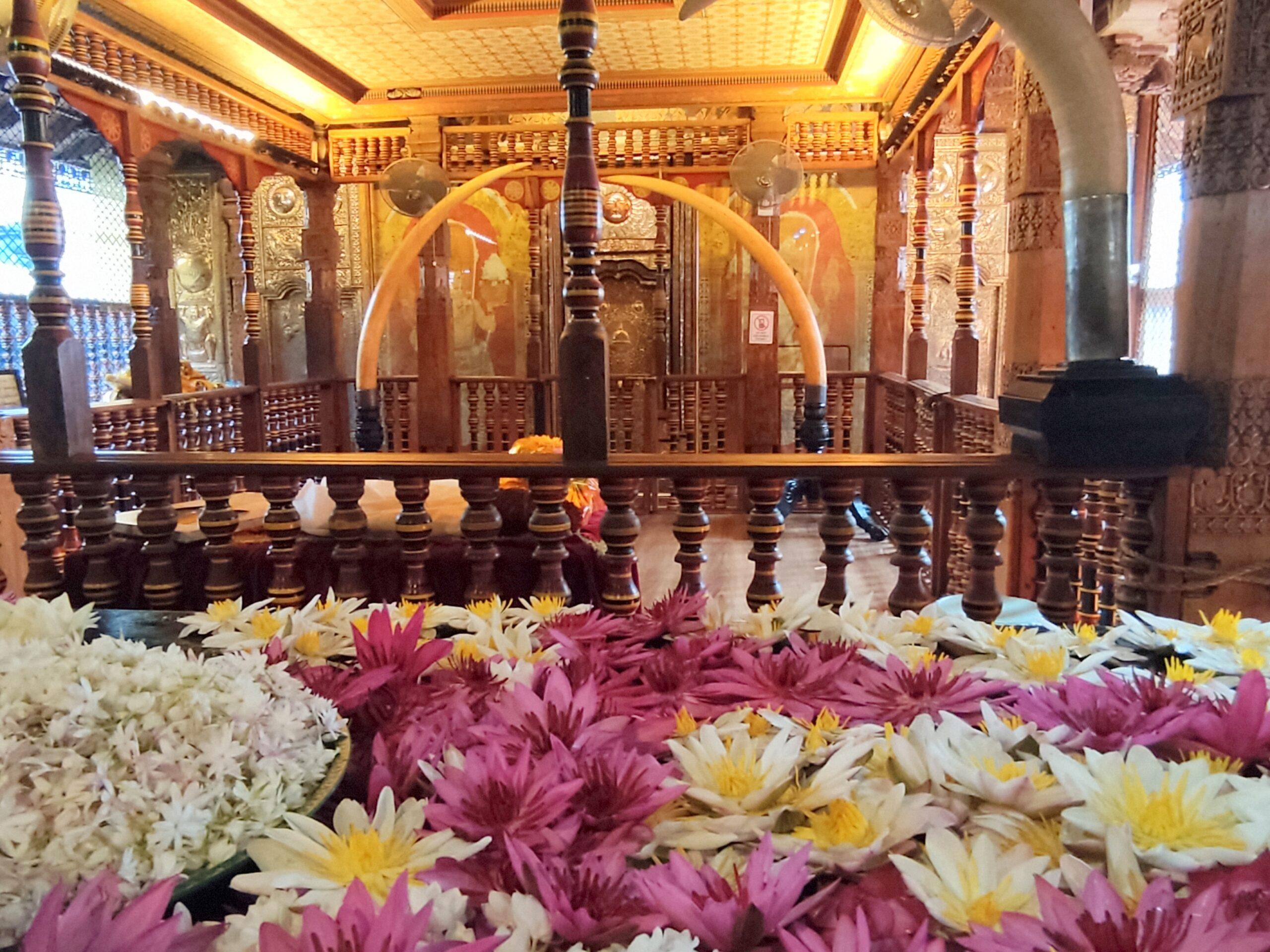 Der Legende nach, brachte eine indische Prinzessin Buddhas Zahn im 4.Jh. n. Chr. nach Sri Lanka. Denn in Indien gabs Kriege um den Besitz des Zahnes. Prinzessin Hemamali hatte die Relique im Haar versteckt. Der Zahn wurde zur Reliquie des singhalesischen Königtums, und ging bei Hauptstadt-Wechseln mit. Bis er 1592 in Kandy seinen festen Platz fand.