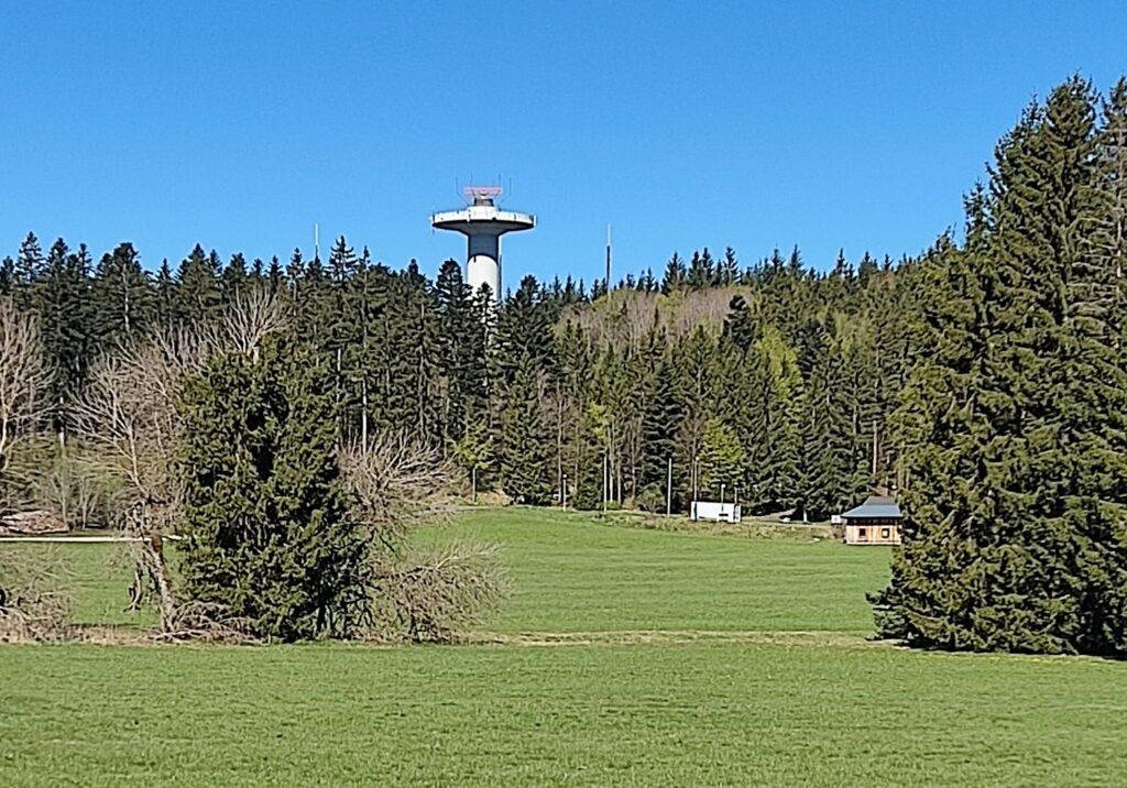 Von Wehingen geht es extrem steil hinauf, auf dem Knieschnäpperle-Weg. Oben steht ein Radarturm der Dt. Flugsicherung, der heute computergesteuert arbeitet. Vor 50 Jahren arbeiteten hier 5 Personen in Tag- und Nachtschicht