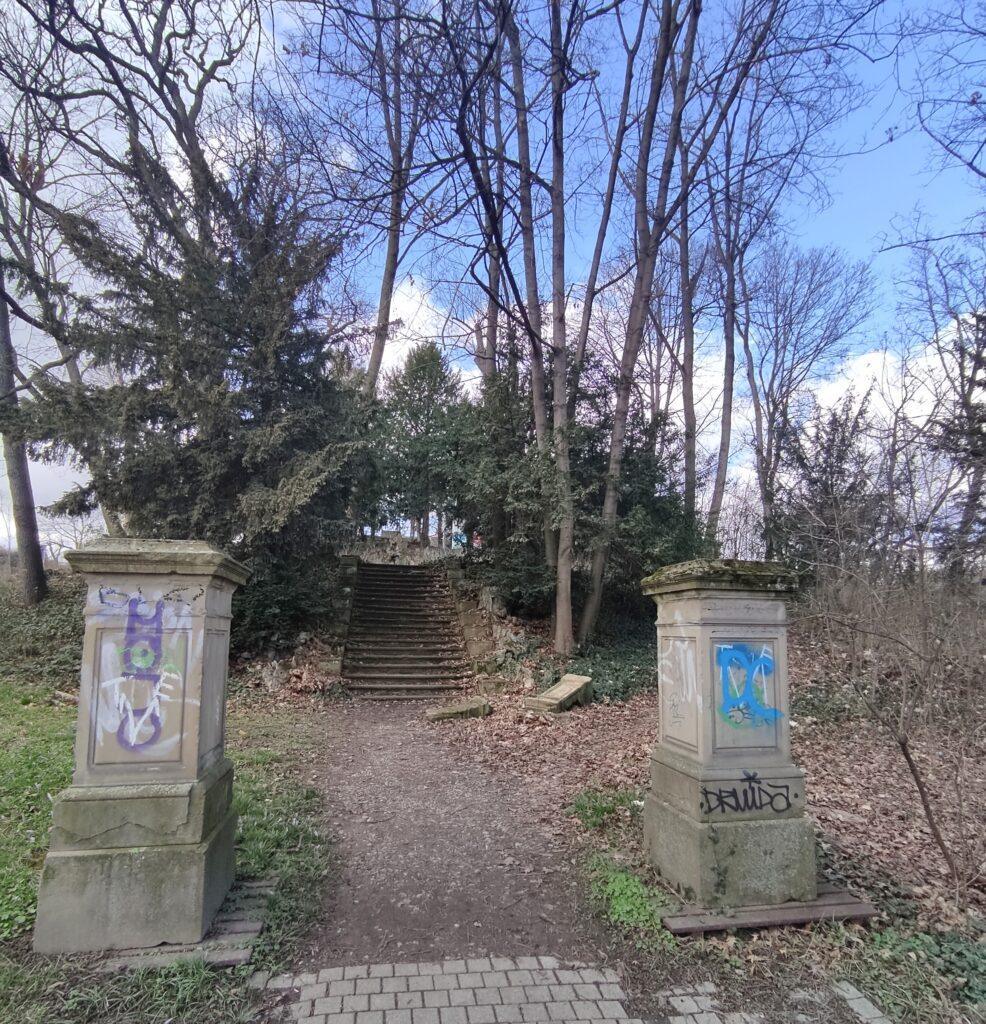 Rosensteinpark und Leibfriedscher Garten liegen schon hinter uns. Wir sind am Wartberg angelangt, nun gehts hinauf zum Killesberg mit seinem Aussichtsturm (Bildmitte)