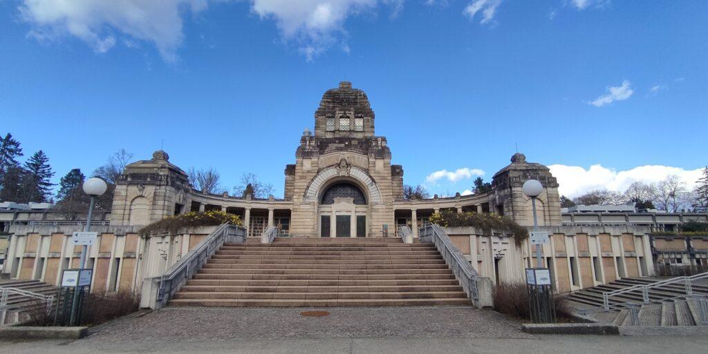 In dem großen Jugendstil-Gebäude befindet sich auch eine Feierhalle. Bemerkenswert ist auch das Kolumbarium (oberirdische Urnenkammer). Das Gebäude ist umrahmt von Mauern mit Nischen, in denen Urnen begesetzt sind. Der Pragfriedhof (21 Hektar) ist der drittgrößte Friedhof Stuttgarts, mit 30.000 Gräbern.