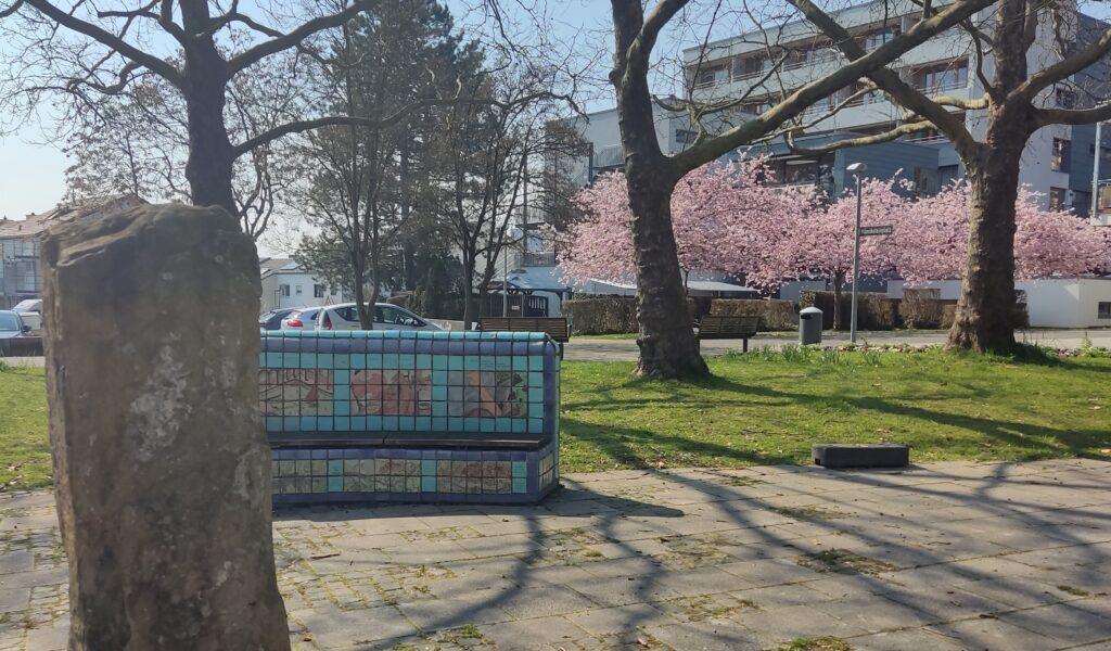 Auf dem zentralen Platz steht der „Mönchstein“, der dem Stuttgarter Stadtteil den Namen gab. Die verkachelten Bänke erzählen die Geschichte von Mönch und Stein