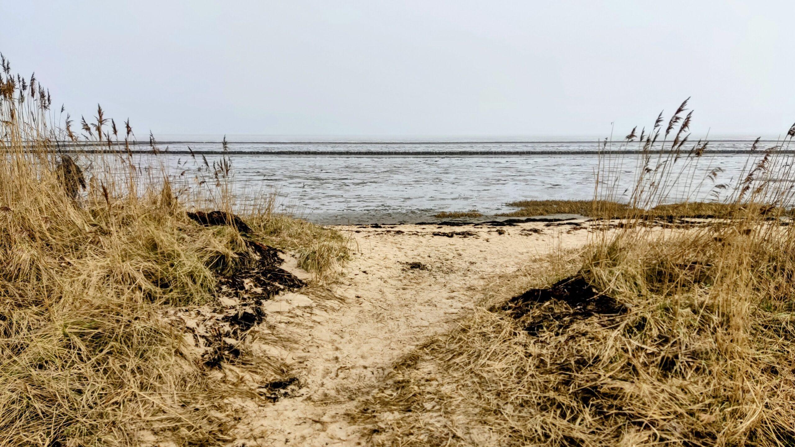 Sylt ist hier nur ein schmaler Landstreifen. Auf der anderen Seite von Rantum liegen Sandstrände und offenes Meer