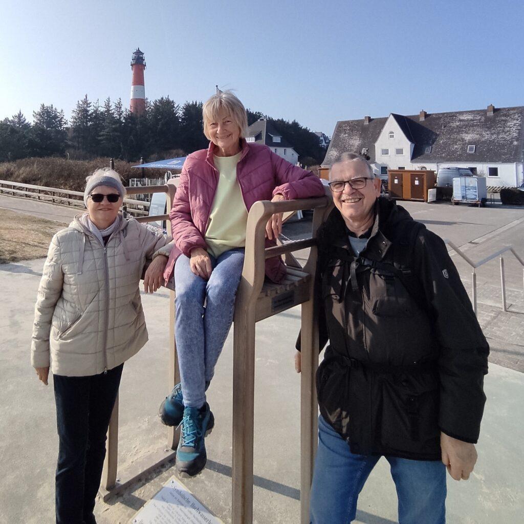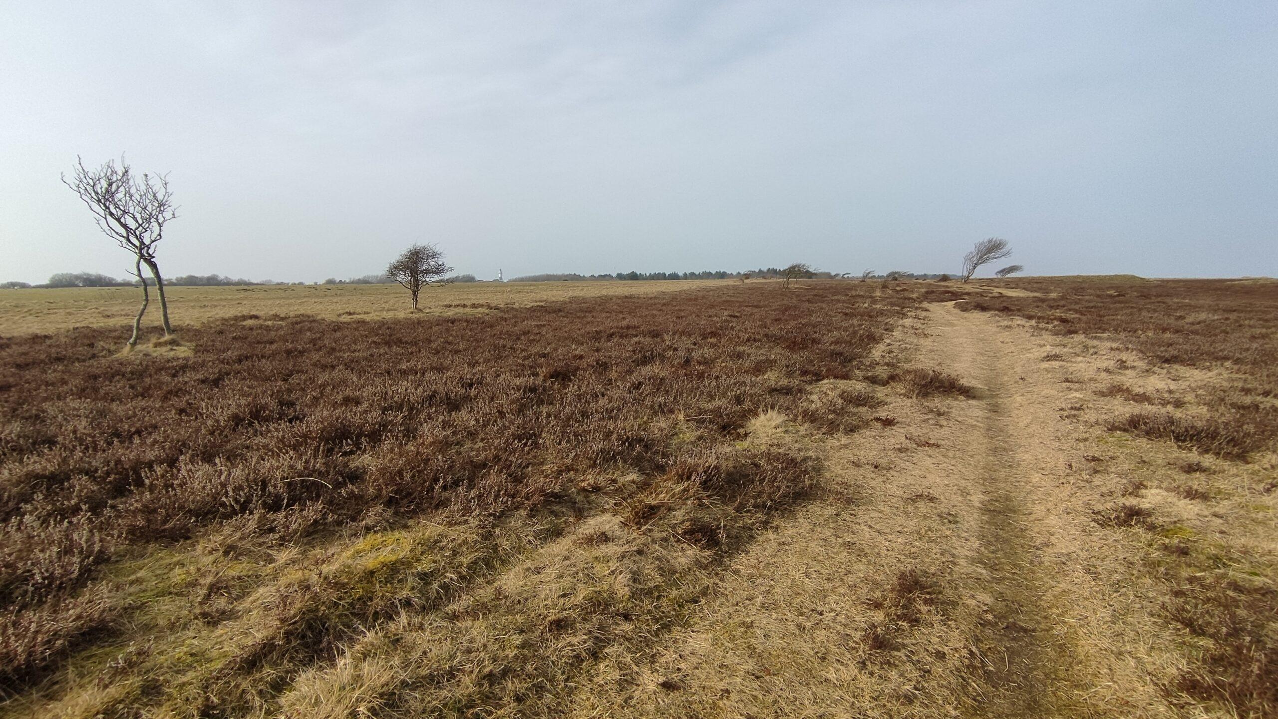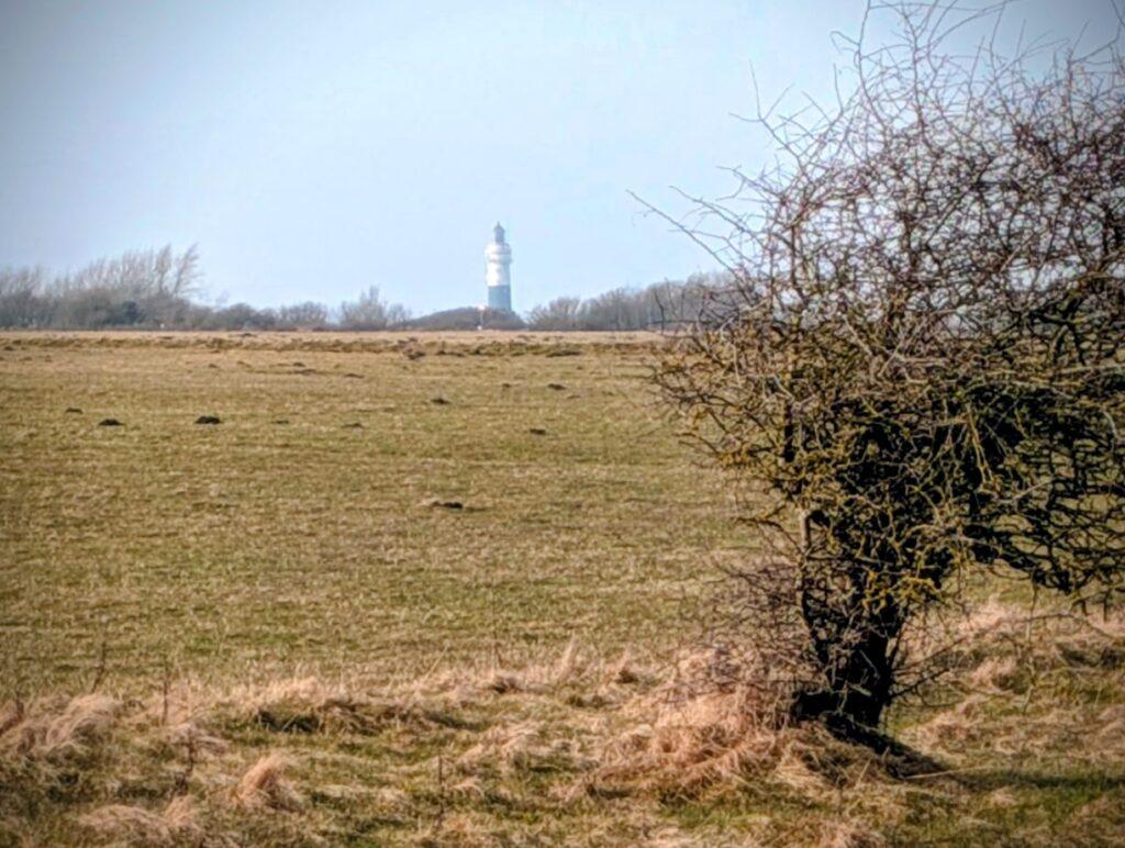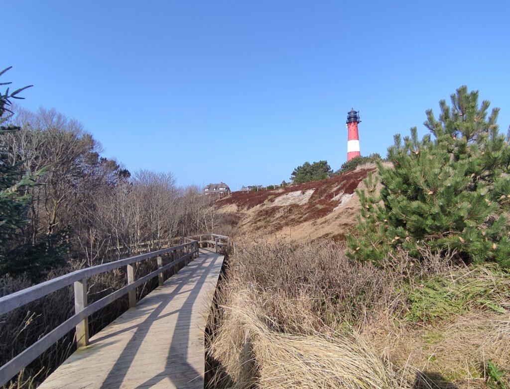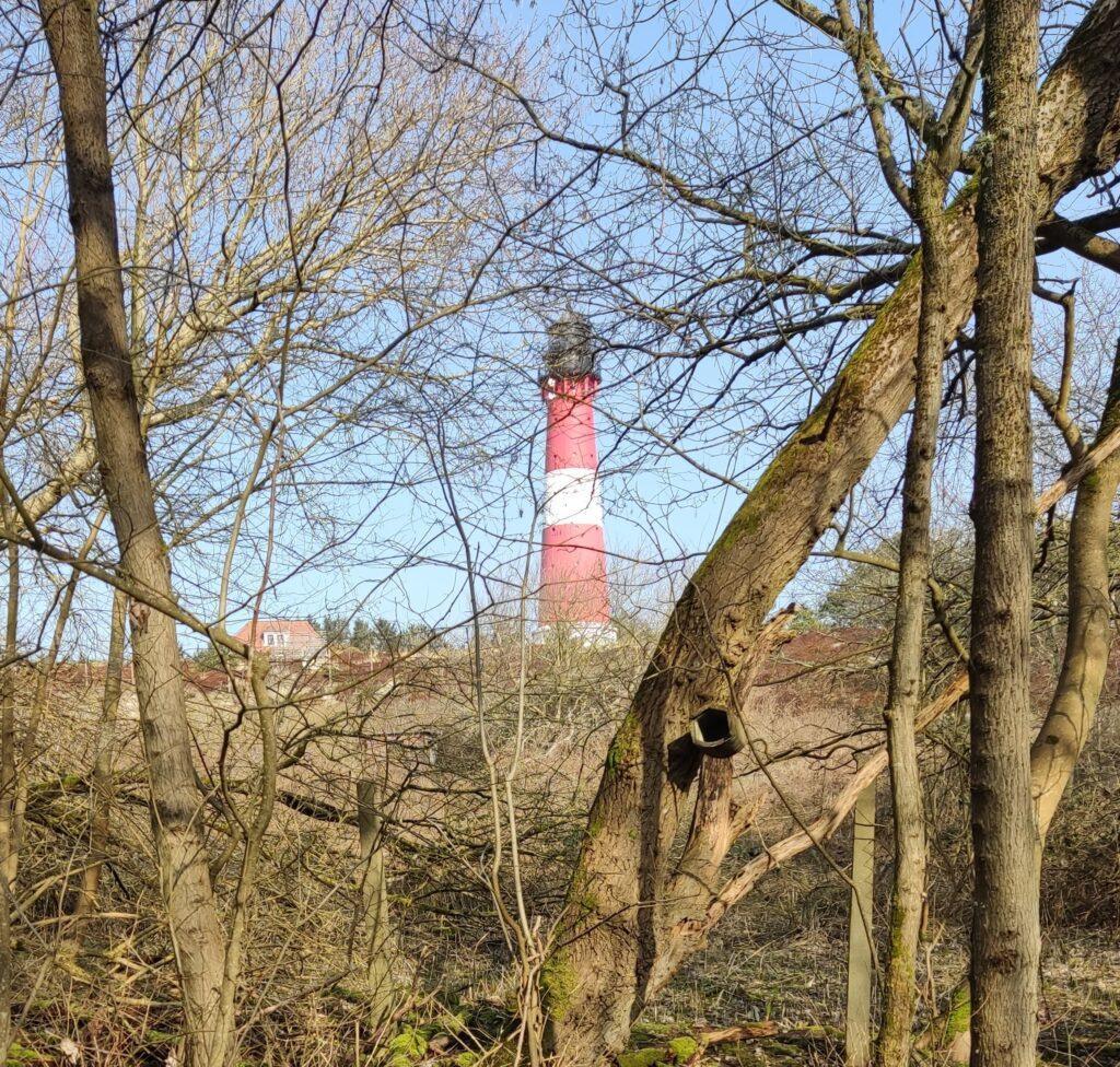 Wir wandern durch die Braderuper Heide, und unser heutiges Ziel rückt ins Blickfeld: Kampen mit seinem Leuchtturm