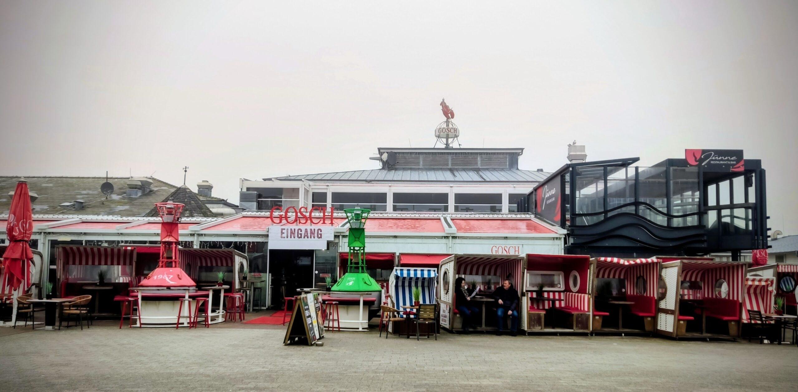 Gosch zeigt sich bunt und plakativ: Mit Leuchtturm, Strandkörben und üppiger Dekoration im Restaurant, einer ehemaligen Fischhalle