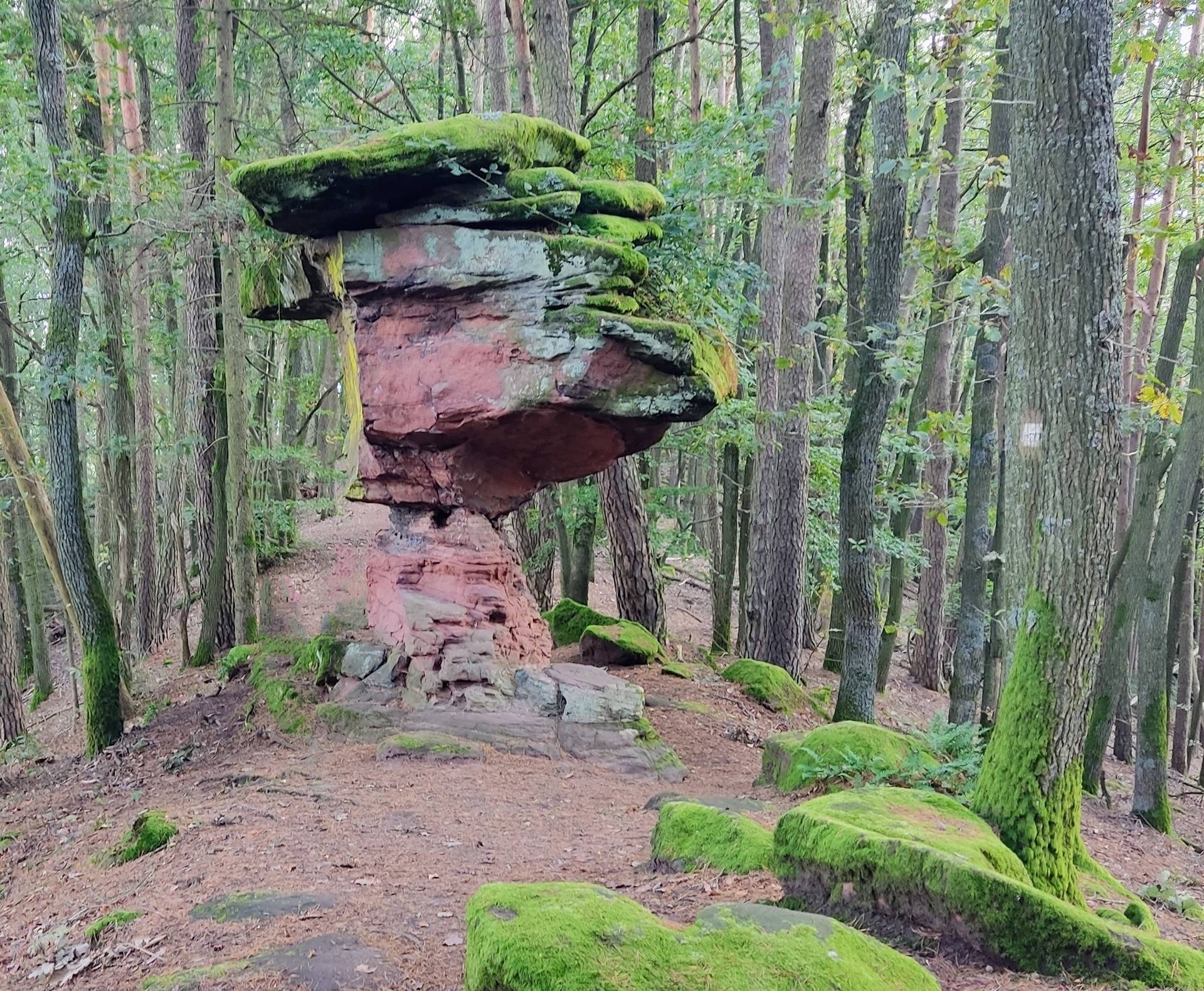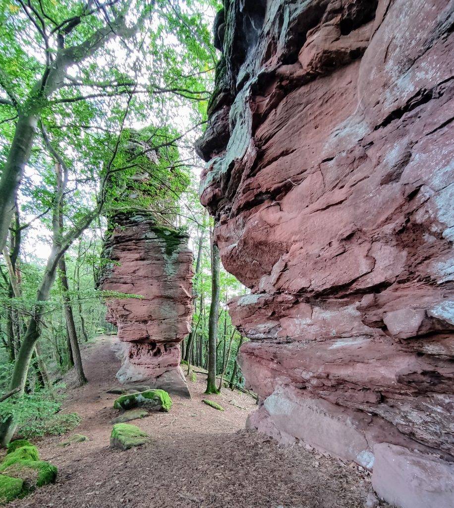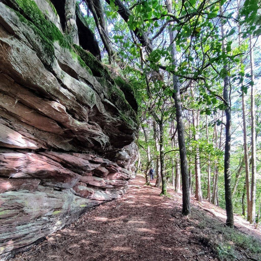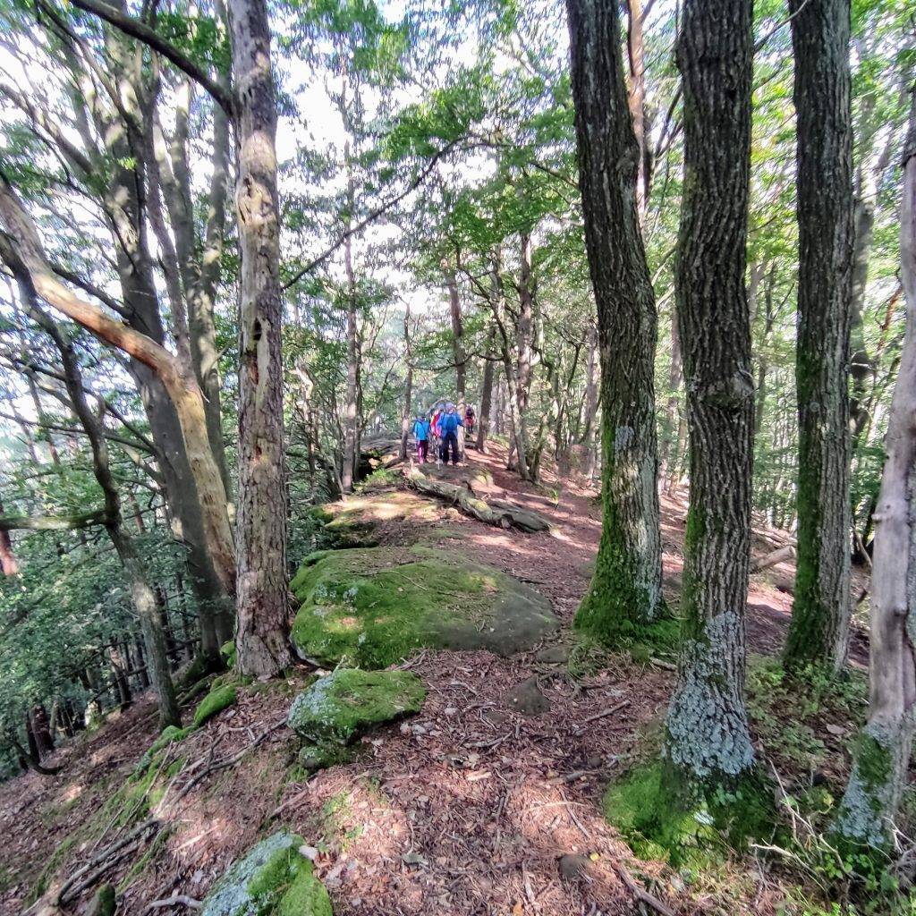 Die erste Stunde auf breiten Wegen, ohne Aussicht und ohne Felsen. Besser ist es daher nicht in Wernersberg zu starten, sondern den ausgeschriebenen Premiumweg Geierstein-Runde zu gehen. Der verläuft größtenteils auf Naturpfaden, und führt direkt zu den Felsen.