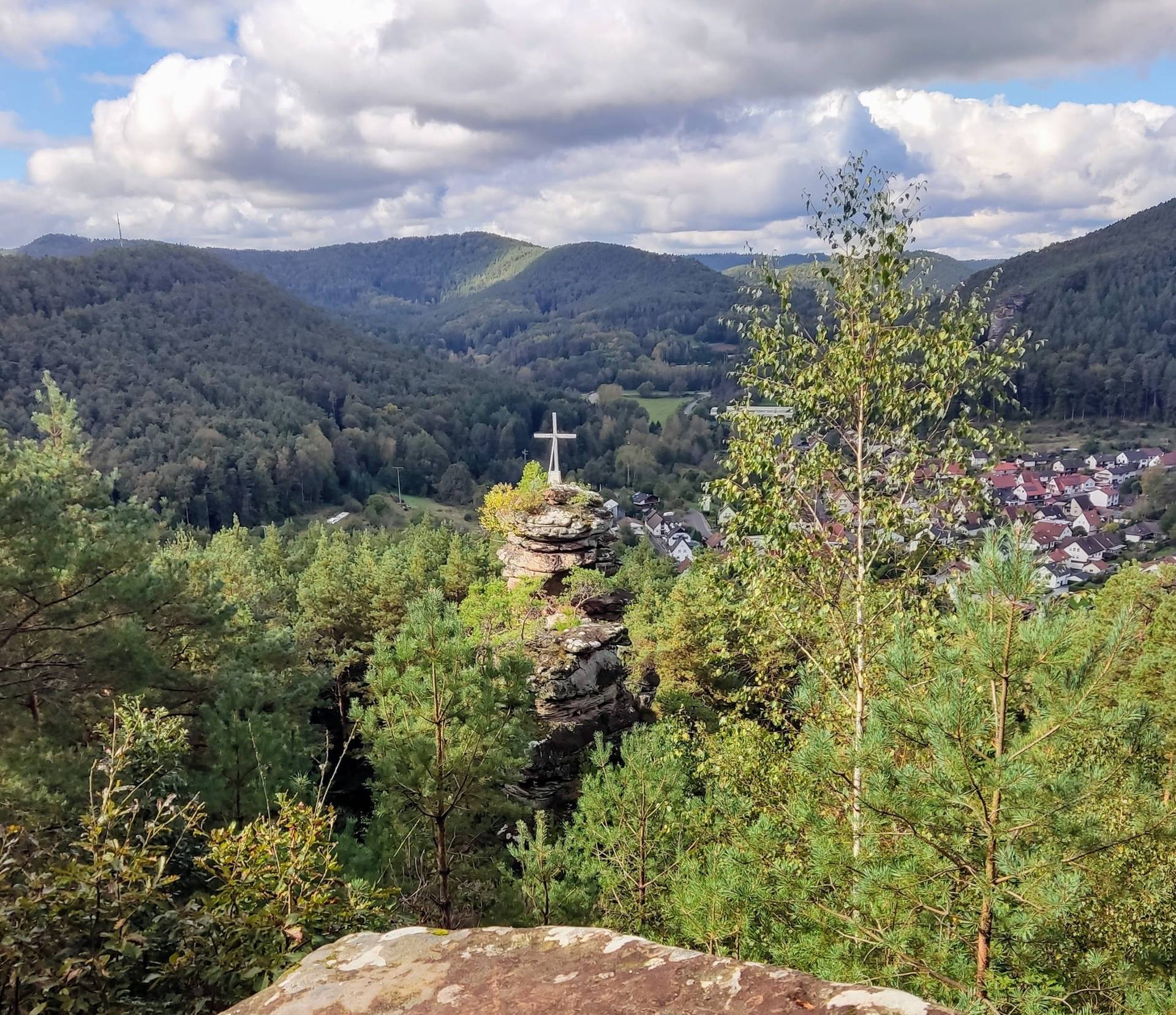 Aussichtspunkt Trifelsblick. Dort drüben waren wir gestern