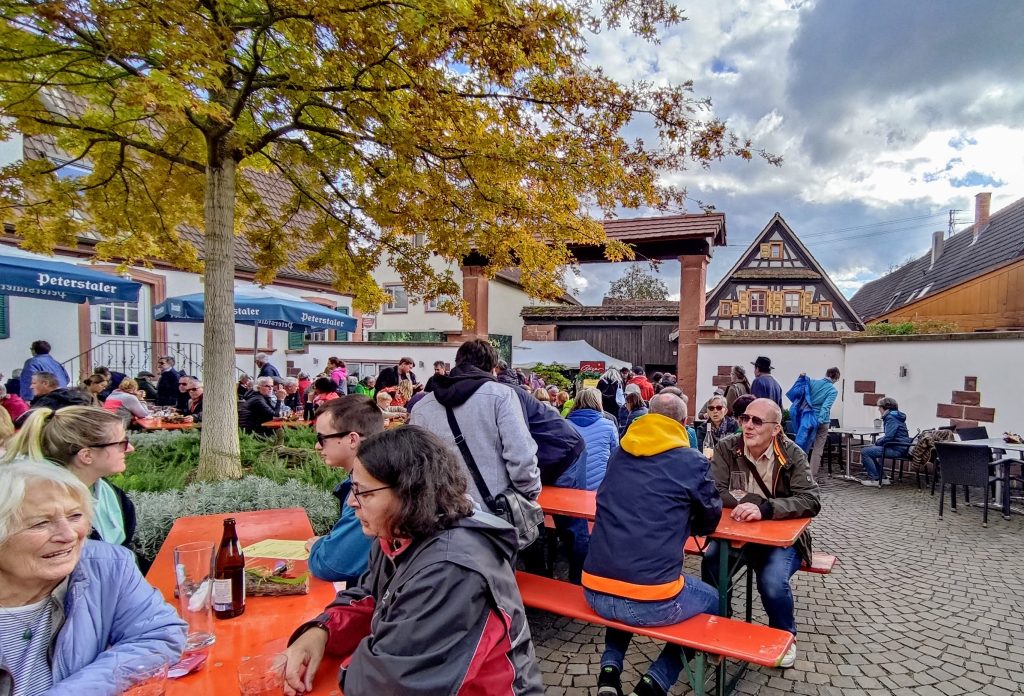 An unseren 4 Pfalz-Tagen gibts täglich eine Wanderung (ca. 15km). Es ist zwar herbstlich kühl, aber trocken – ideales Wanderwetter. Abends lädt das Weingut Augspurger zur Weinprobe, und in Dierdorf besuchen wir das Weinfest in den Winzerhöfen mit Krämermarkt.