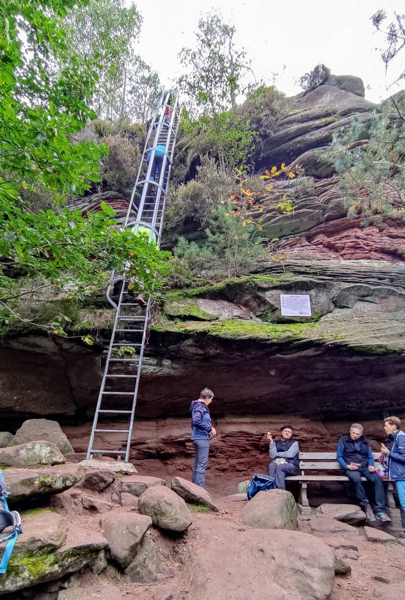 Per Leiter auf den Gipfel des „Hühnersteins“ (455m),